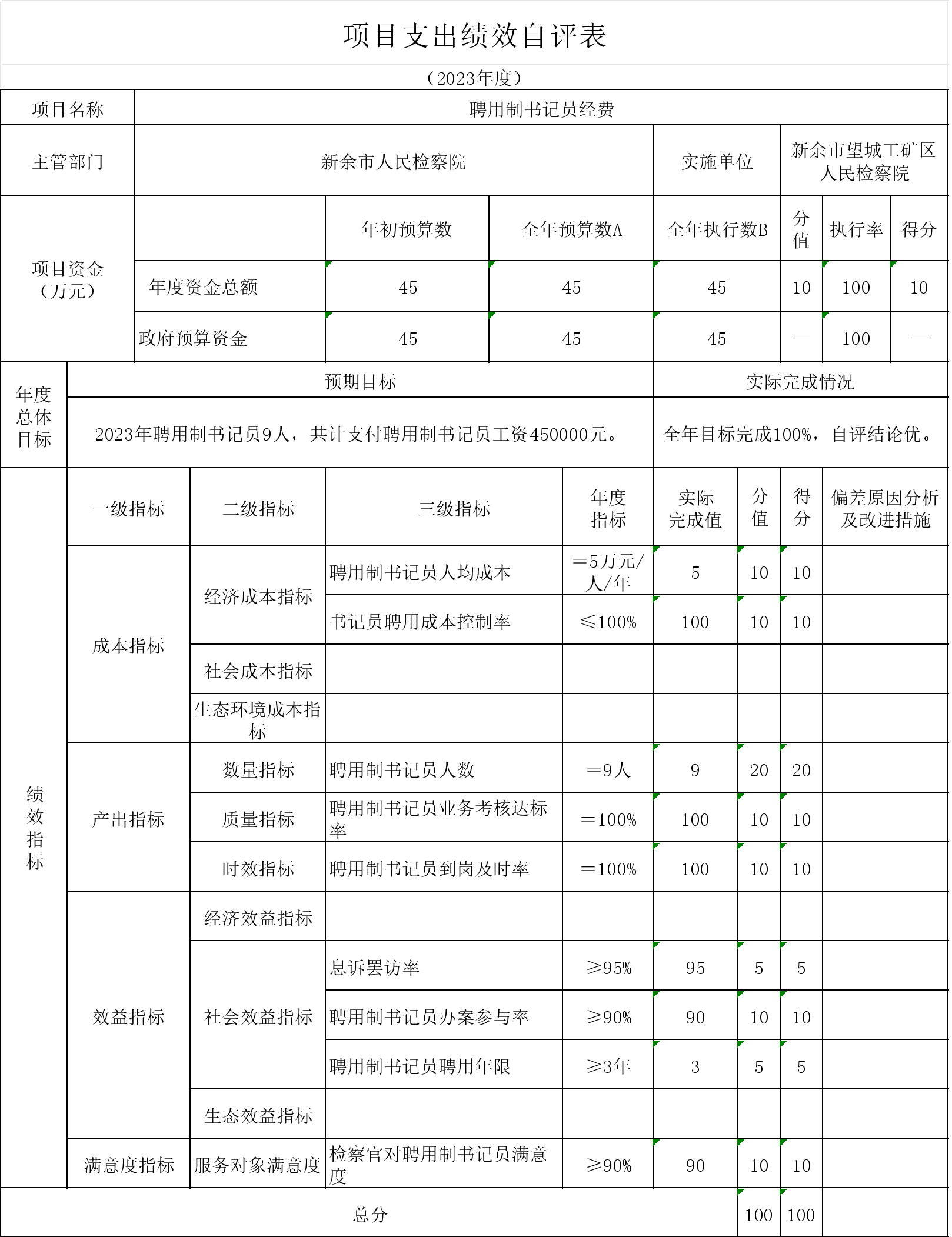 本单位“聘用制书记员经费项目支出绩效自评表”如下: