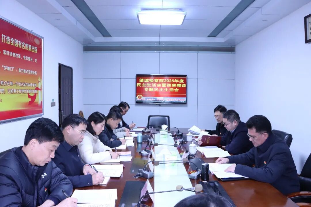 2月28日,望城工矿区检察院党组召开2025年度民主生活会暨巡察整改专题民主生活会。院党组书记、检察长李峰鑫主持会议。市检察院党组副书记、副检察长黄建勇,市纪委监委驻市中级人民法院纪检监察组副组长刘东海到会指导。院领导班子成员参加会议,部分党员群众代表列席会议。