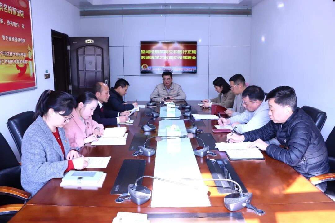 近日,新余市望城工矿区人民检察院召开党组(扩大)会,深入学习贯彻习近平总书记关于树立和践行正确政绩观的重要论述,学习中共中央办公厅《关于在全党开展树立和践行正确政绩观学习教育的通知》精神,传达学习中央、省委、市委和最高检、省检察院、市检察院学习教育有关会议精神,审议望城检察院学习教育工作安排,动员部署学习教育工作。党组书记、检察长李峰鑫主持会议。