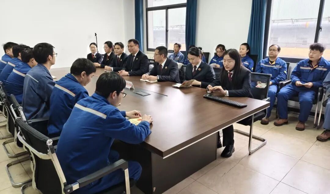 四级高级检察官刘清华带领办公室干警走访硅钢薄板事业部、维检中心等单位。