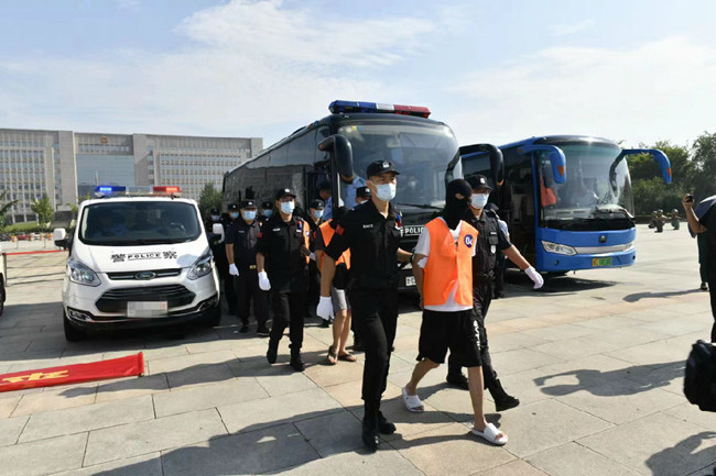 涉案犯罪嫌疑人被公安机关押解回临淄。